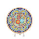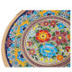 珐琅彩24K描金21厘米陶瓷盘,花卉图案呈现西班牙地中海异域风情,画面美丽,画工精细,色彩纯正明亮,图案生动。经过手工制坯,绘画,上色,描金等多道工序及三次高温烧制得到光彩夺目的瓷盘,可以装饰家居和馈赠亲友。瓷盘上有两个预留孔用于拴系挂线,可将陶瓷盘悬挂在玄关,餐厅,客厅墙上,也可以用盘架支摆在酒柜上,书柜里,盘架上等.