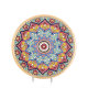 珐琅彩24K描金32厘米陶瓷盘,花卉图案呈现西班牙地中海异域风情,画面美丽,画工精细,色彩纯正明亮,图案生动。经过手工制坯,绘画,上色,描金等多道工序及三次高温烧制得到光彩夺目的瓷盘,可以装饰家居和馈赠亲友。瓷盘上有两个预留孔用于拴系挂线,可将陶瓷盘悬挂在玄关,餐厅,客厅墙上,也可以用盘架支摆在酒柜上,书柜里,盘架上等.