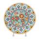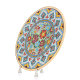 珐琅彩24K描金35厘米陶瓷盘,花卉图案呈现西班牙地中海异域风情,画面美丽,画工精细,色彩纯正明亮,图案生动。经过手工制坯,绘画,上色,描金等多道工序及三次高温烧制得到光彩夺目的瓷盘,可以装饰家居和馈赠亲友。瓷盘上有两个预留孔用于拴系挂线,可将陶瓷盘悬挂在玄关,餐厅,客厅墙上,也可以用盘架支摆在酒柜上,书柜里,盘架上等.