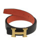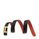 HERMES/爱马仕 窄款金竖纹扣腰带 双面可佩戴  黑橘色  95cm