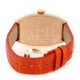 亮丽的橘色鳄鱼皮表带,搭配玫瑰金镶钻表壳,