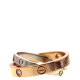 CARTIER/卡地亚 18K玫瑰金/18K白金镶钻双环LOVE钻石戒指指环,一款表达自由精神的珠宝,缔造手镯传奇。LOVE系列诞生于上世纪七十年代的纽约,见证了诸多名流伉俪的的爱情传奇。手镯采用白K金或玫瑰金,铺镶钻石,抑或点缀珍贵宝石,如今的LOVE系列仍然传递着炽烈的情感,爱无止境。这款卡地亚18K玫瑰金及白18K金戒指利用18K玫瑰金环镶嵌4颗钻石以及白18K金环镶嵌2颗钻石。颜色和设计都精致美丽,让每一个女性佩戴起来都完美无瑕。搭配一件修身牛仔和浅色T恤,外套一件舒适的休闲西服,当然一副帅气的太阳镜更是必不可少的,无论是平底鞋还是高跟鞋你都是最迷人的那个。