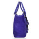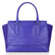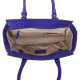 外部结构:宝蓝色牛皮材质,马毛拼接翻盖转扭口袋,两个提手,银色五金配件,拉链闭合