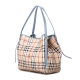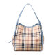 首页> 包袋> 单肩包> 博柏利> BURBERRY/博柏利 女士蓝色PVC/配皮经典骑士格纹手提包单肩包托特包 3963068