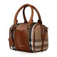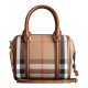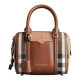 BURBERRY/博柏利 女士小号HOUSE CHECK格纹 帆布/配皮 棕色手提包单肩包保龄球包 3903916