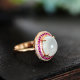 首页> 首饰> 戒指/指环> 缤纷美饰> BINMEI/缤纷美饰 18K金红宝钻石天然A货翡翠戒指 白冰翡翠蛋面豪华镶嵌经典款(附鉴定证书)