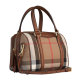 BURBERRY/博柏利女士帆布/配皮新款小号HOUSE CHECK格纹拼皮革ALCHESTER手提包#3980841