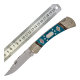 首页> 户外运动> 户外装备配件> 户外工具 > 巴克> buck/巴克 美国原装进口 二个知名刀匠共同打造 收藏刀 限量编号 25把 手工110绿松石限量版 编号05