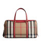 首页> 包袋> 手提包> 博柏利> BURBERRY/博柏利 女士红色帆布/配皮中号格纹奥尔切斯特手提包单肩包保龄球包 3980849