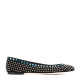 麂皮芭蕾舞鞋。上饰金属饰钉。圆头鞋。真皮内里logo标识。皮底。