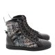个性拼接女士绒面配皮高帮运动鞋,漆皮logo更显时尚