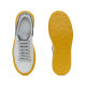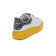 白色和流行黄色皮革运动鞋,鞋舌饰有 Alexander McQueen 标志,后跟反光片。顶部配有超大号橡胶鞋底。模型提供了一对额外的斑点和银色鞋带。