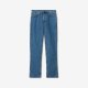 牛仔裤,选用弹力牛仔布打造。以水洗中调蓝色演绎,于意大利工坊精制而成。设有 5 个口袋,采用直筒剪裁。搭配反绒面革饰牌,其上点缀马术骑士徽标(EKD)压花。
