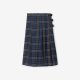 苏格兰半裙,选用羊毛面料打造,装饰精纺 Burberry 格纹。A 字廓形,融入褶饰设计,搭配可调式小牛皮 B 字型扣环束带。
