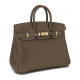 HERMES/爱马仕大象灰金色扣togo牛皮Birkin25手提包B刻